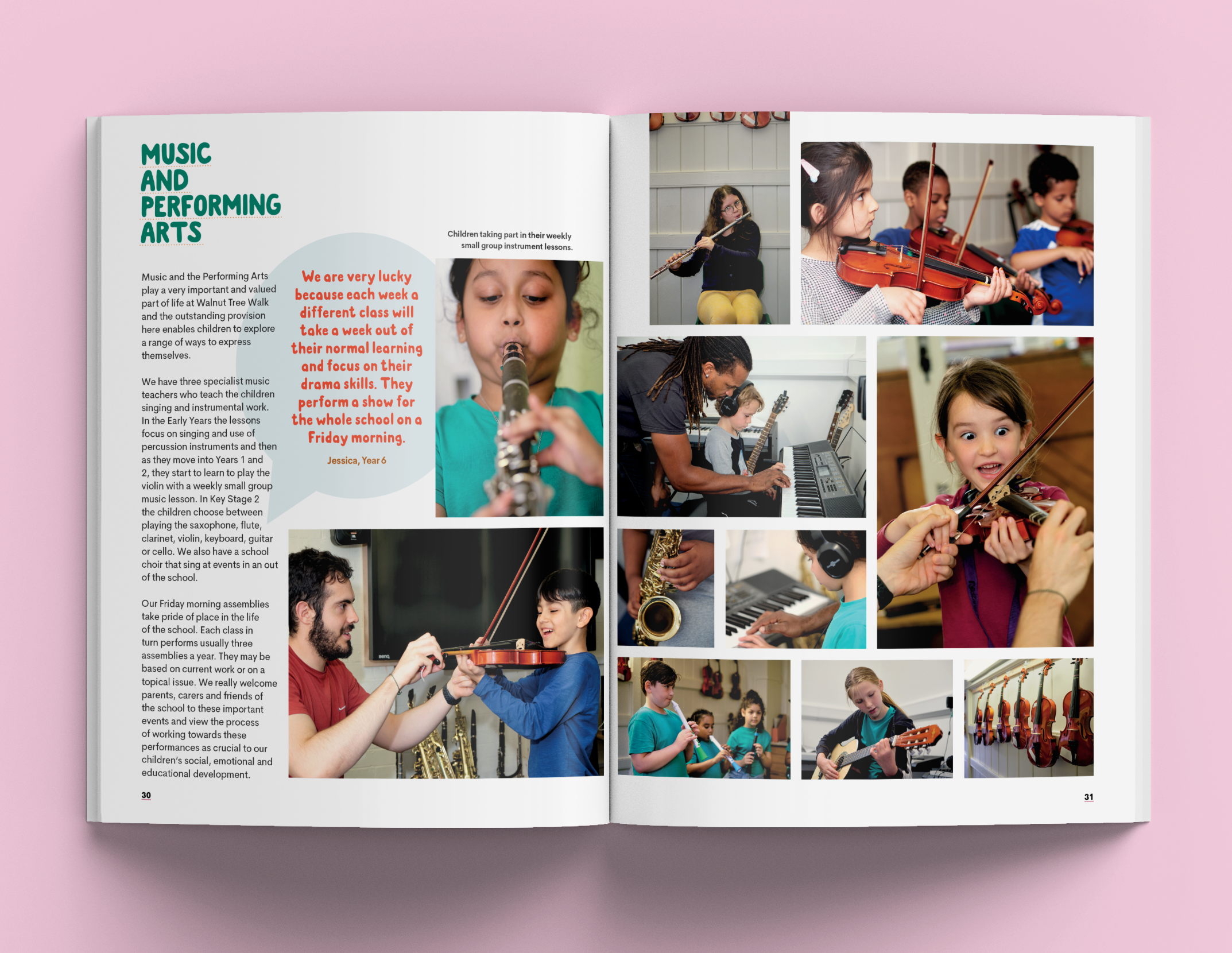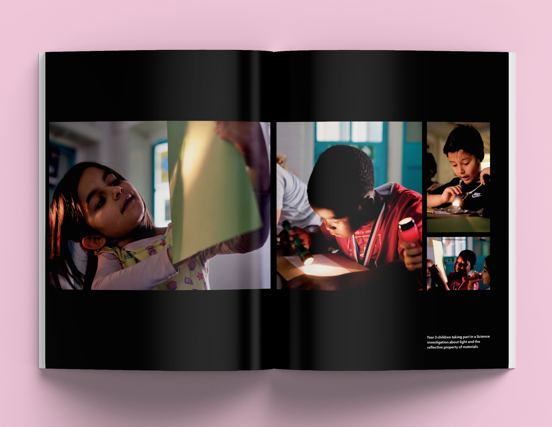 The prospectus for this south London primary school was designed to demonstrate the family ethos and uniquely creative curriculum of the school. “which gives every child an opportunity to reach their full potential and nurture their individual talents.”